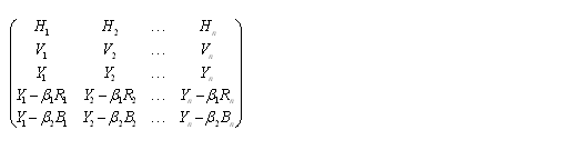 現(xiàn)行的彩色電視系統(tǒng)中,由行向量H,幀向量V,亮度向量Y組成的,表達彩色信息的是由紅向量R,綠向量G,蘭向量B的三維線性空間。也可用以下的矩陣來表示: