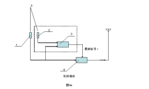 圖4a,新型立體電視系統(tǒng)的發(fā)射部份的框圖。其中虛線部份,即是在普通電視系統(tǒng)基礎上新增的部份。
