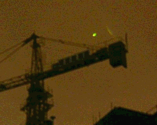 2013年6月6日凌晨,武漢市區(qū)電閃雷鳴?!段錆h晨報》攝影記者石一在機場高速公路與馬池路交會處附近的一個小區(qū)拍攝雷電時,無意中拍到幾個綠黃色神秘光團(圖2、3)。[2]